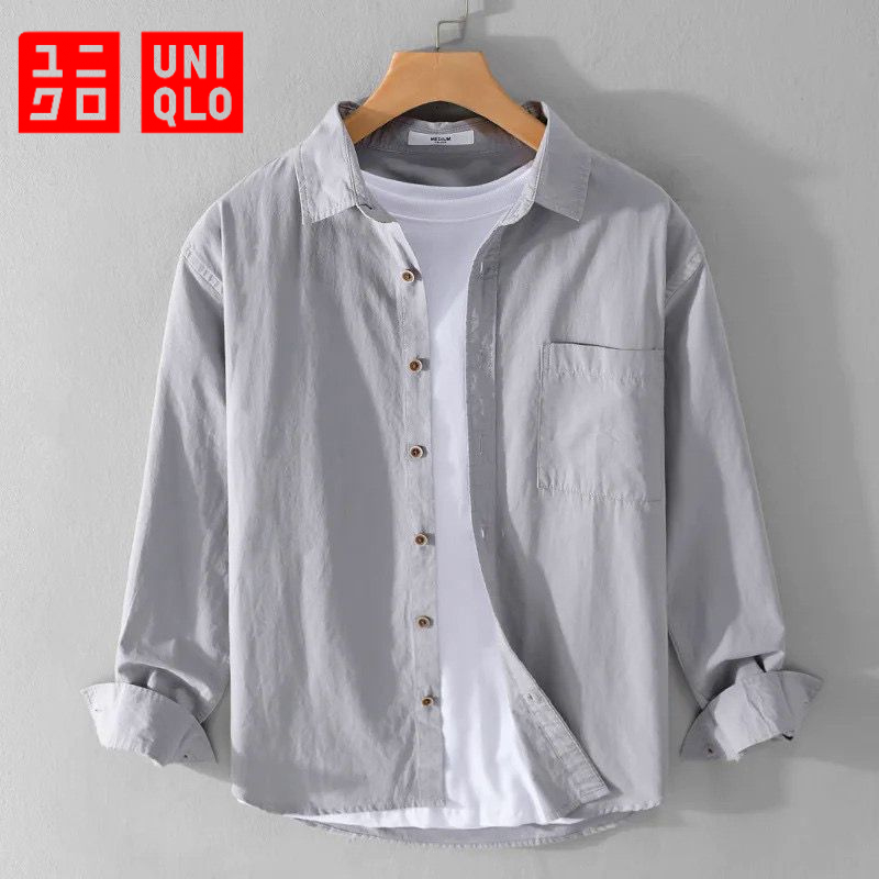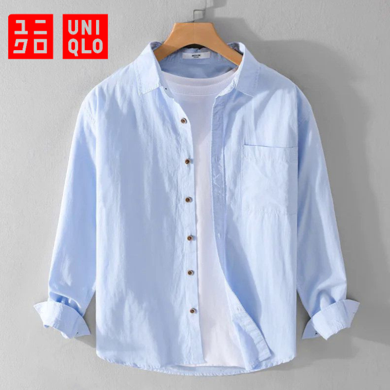Kemeja Polos Pria Slim Fit Lengan Panjang | Gaya Uniqlo Casual Nyaman & Modis