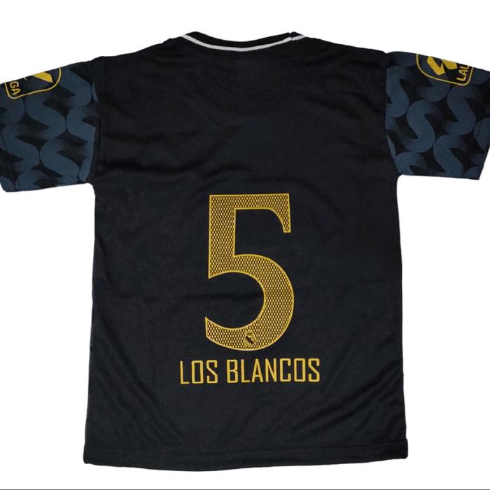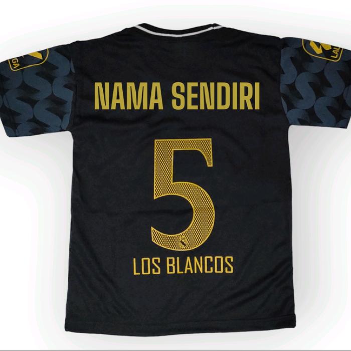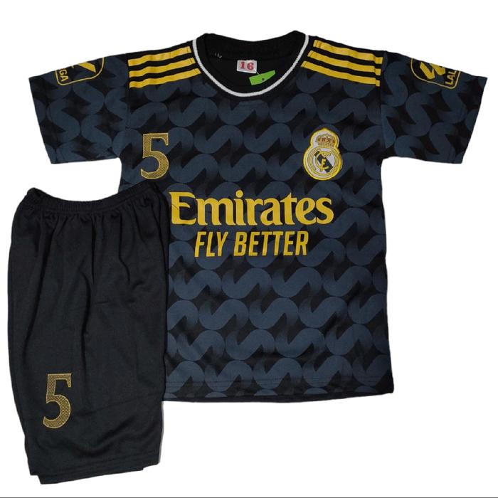 Setelan Baju Bola Anak Laki-Laki Dan Perempuan Baju Bola Jersey Madrid Hitam Umur 6 Bln - 14 Th Gratis Sablon Nama Sendi
