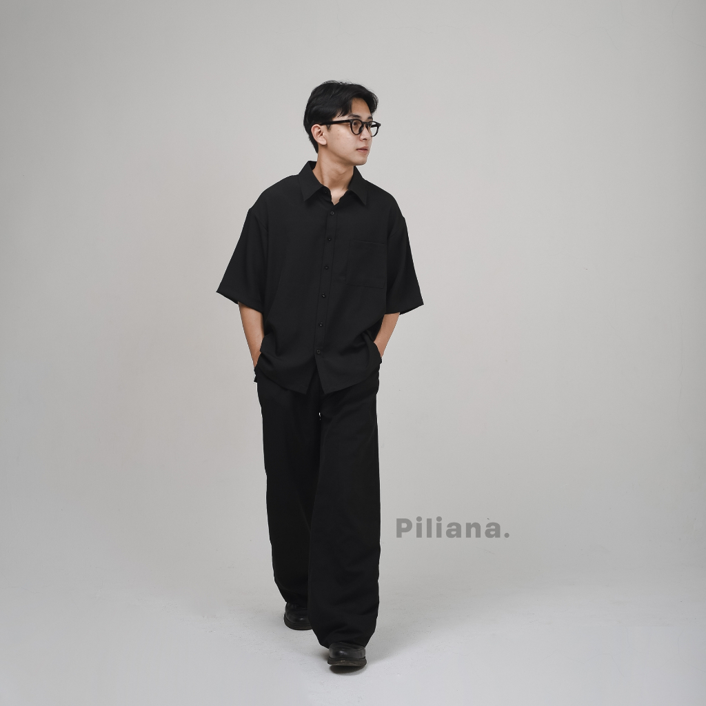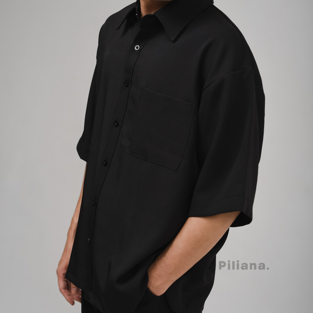 Piliana Kemeja Oversize Lengan Pendek Pria Black Kemeja Boxy
