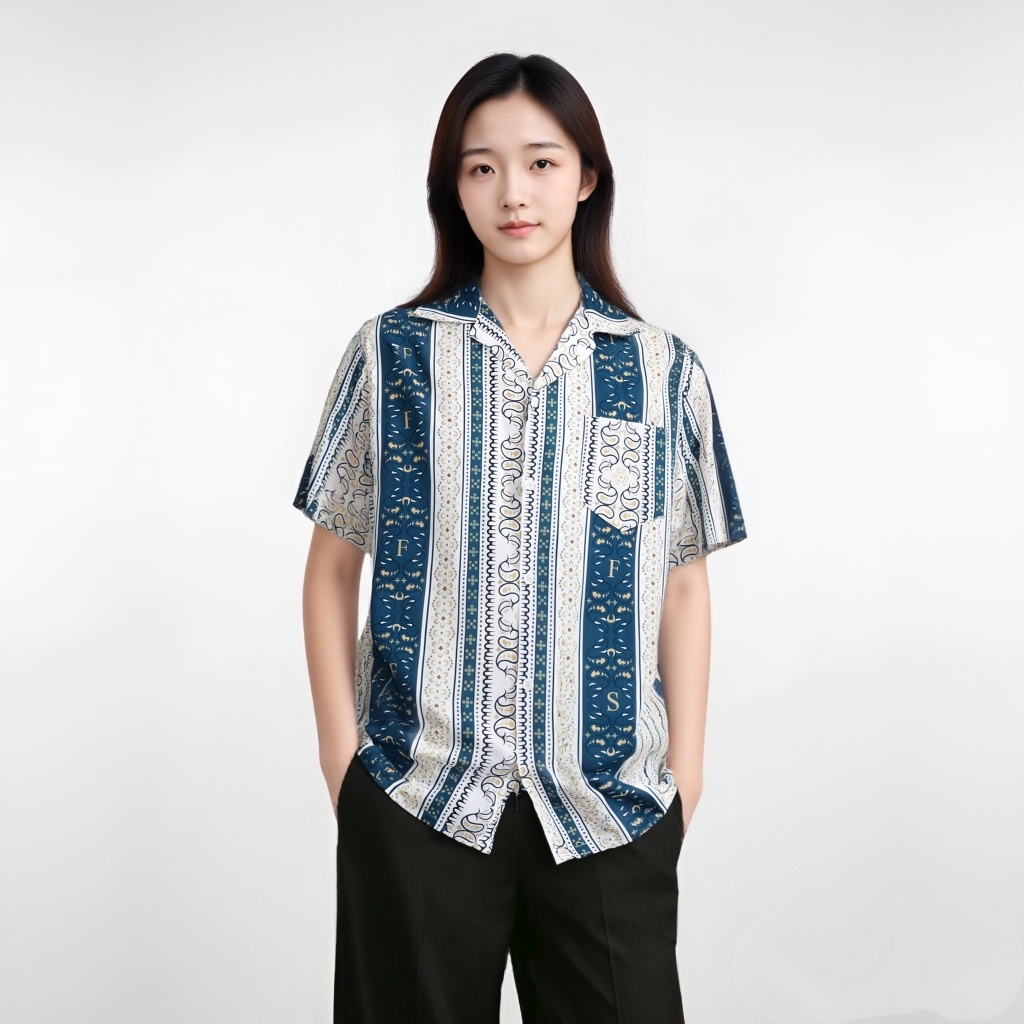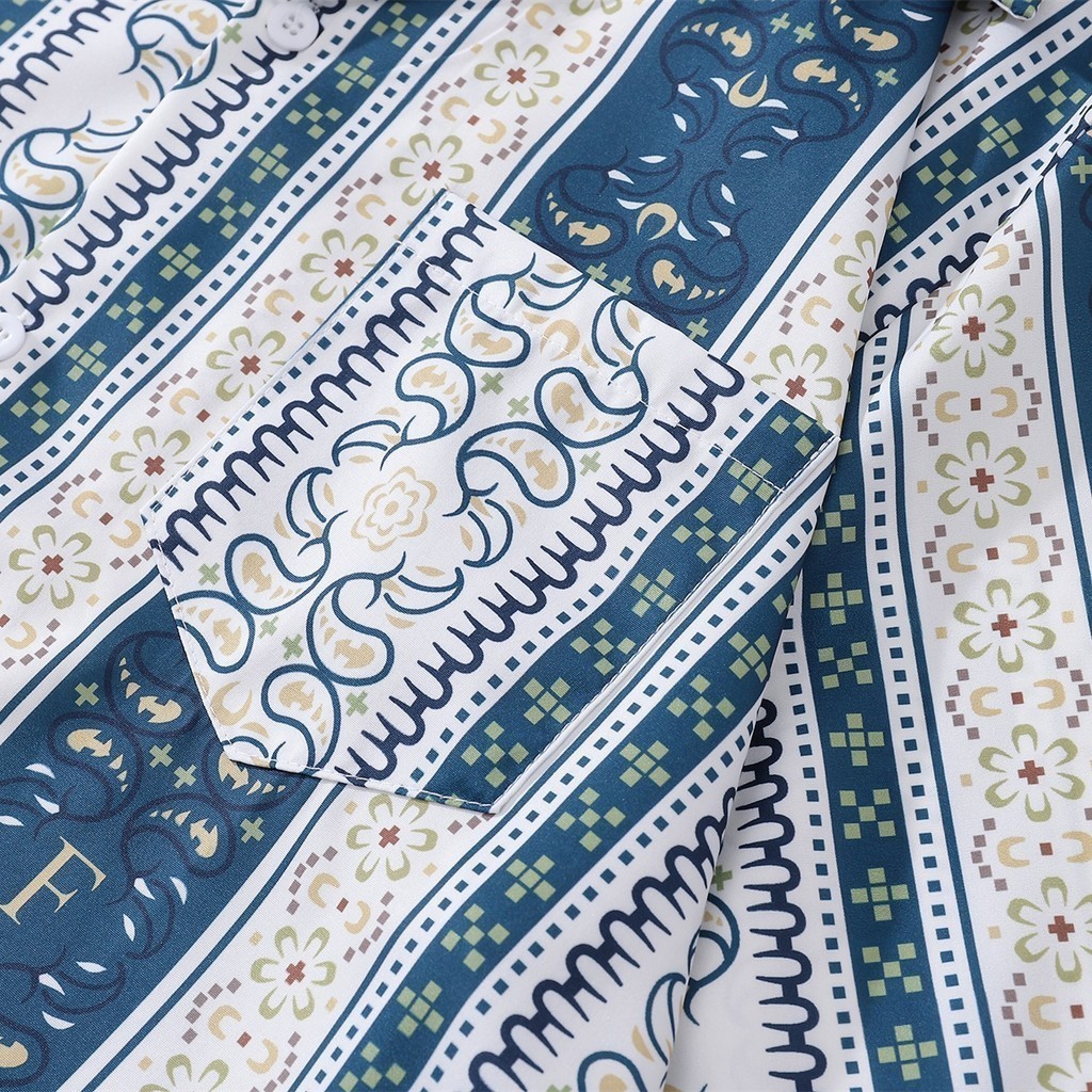 COOLCOOL Fashion Stretch Fabric Does Not Fade Striped Flowers Batik Modern Pocket Loose Short Sleeve Men's Shirt