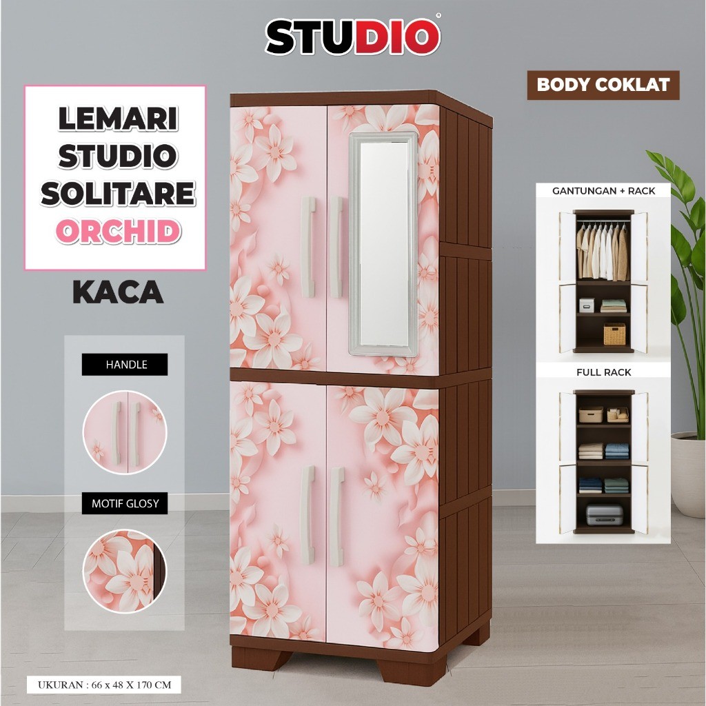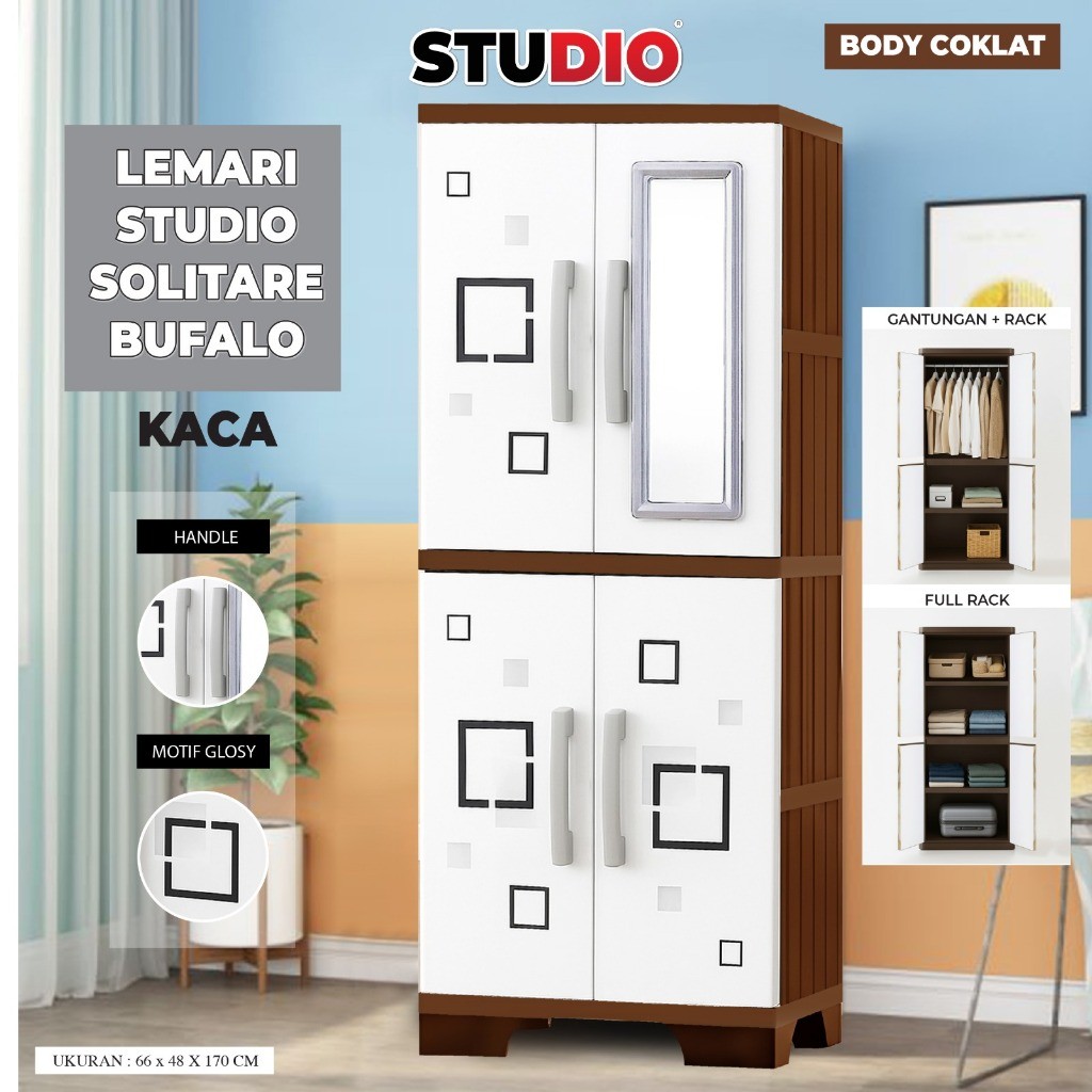 STUDIO - Lemari Pakaian 2 Pintu Solitare VIP Jumbo Gantung + Rak + Kaca + Kunci Printing