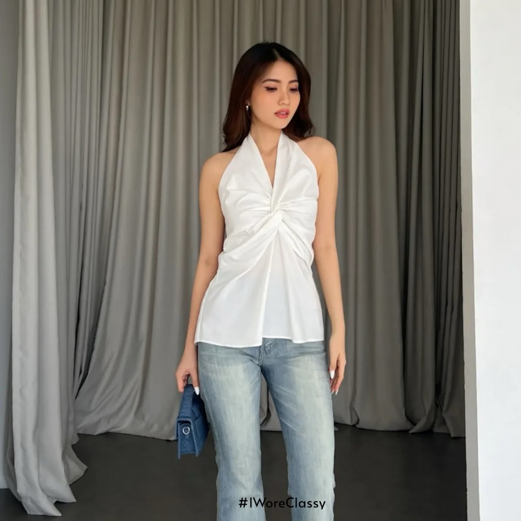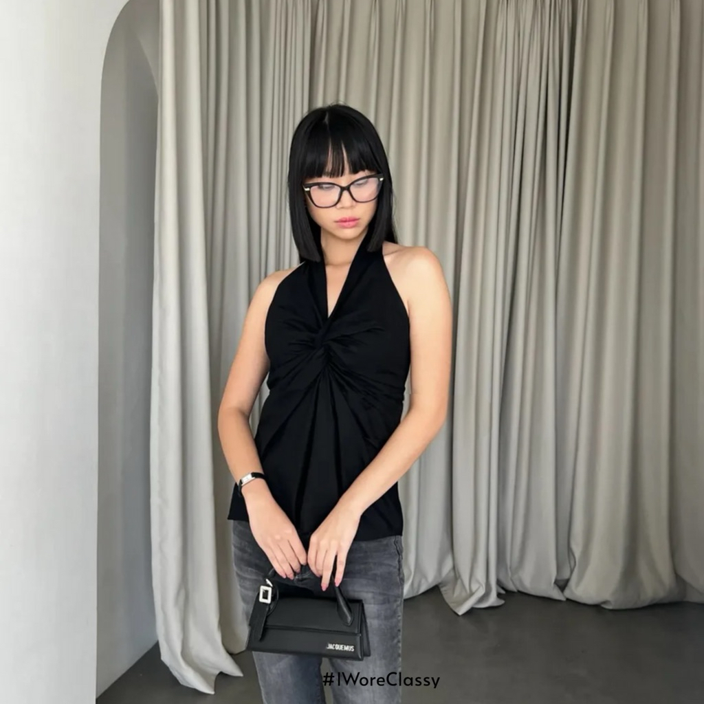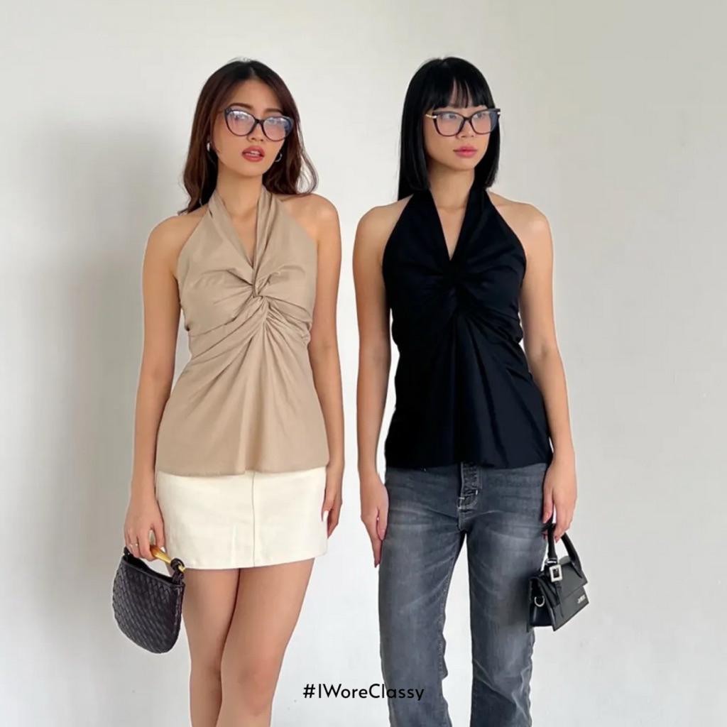 Classy Thea Halter Top 0850 | Atasan Tanktop Pita Wanita Vneck | Twist Top Tanktop Halter Vneck