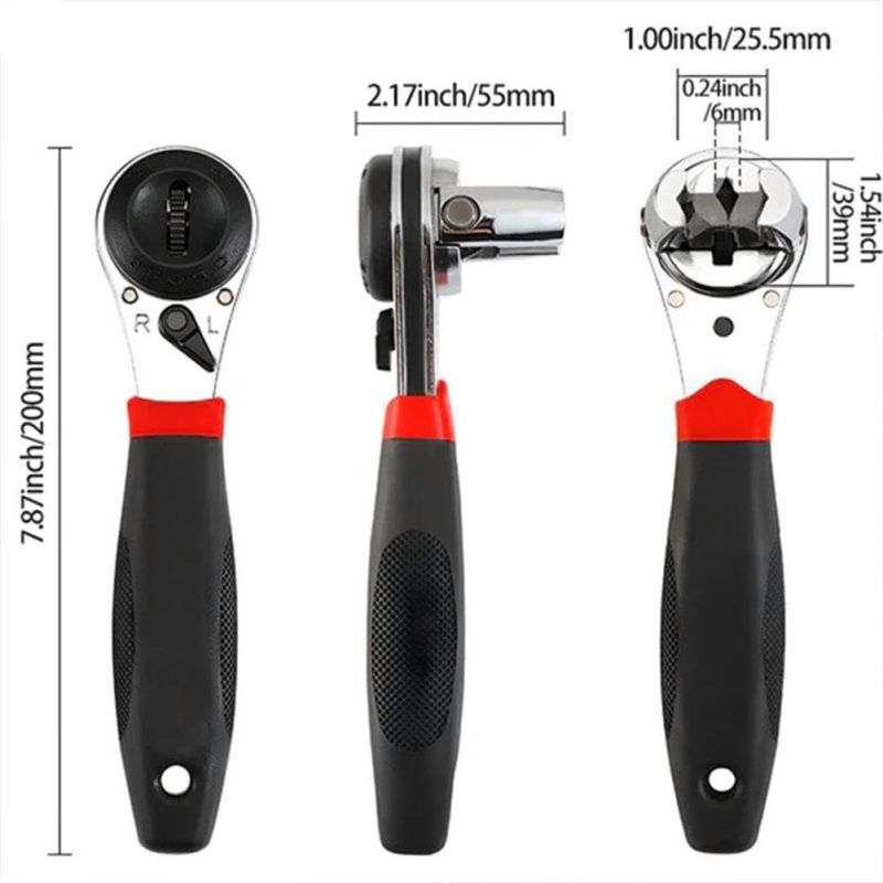 6-22Mm Adjustable Ratcheting Wrench Kunci Gagang Sok Ratchet Shock Socket