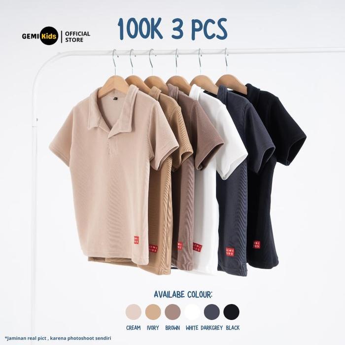 100K 3 Pcs | Kaos Polo Anak Bahan Knit Premium T Shirt Kerah Wangki Laki-Laki Perempuan Unisex Cewek Cowok - Alaska - 3