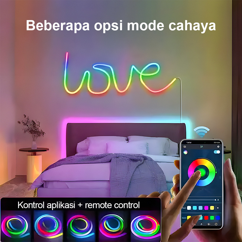 Paket Led Neon Flex Rgb Running 5M/10M Dc 12V/24V Sensor Hp Lengkap Sensor Suara App Control Adaptor