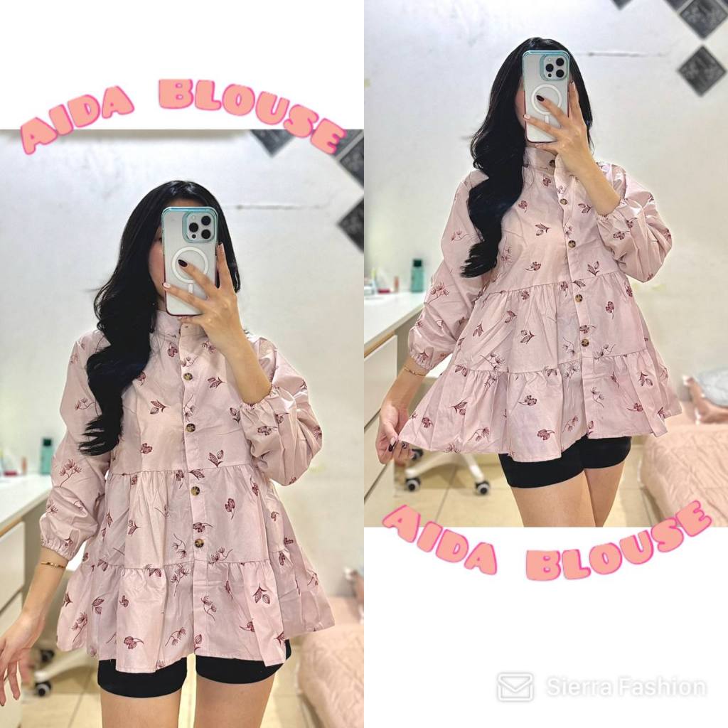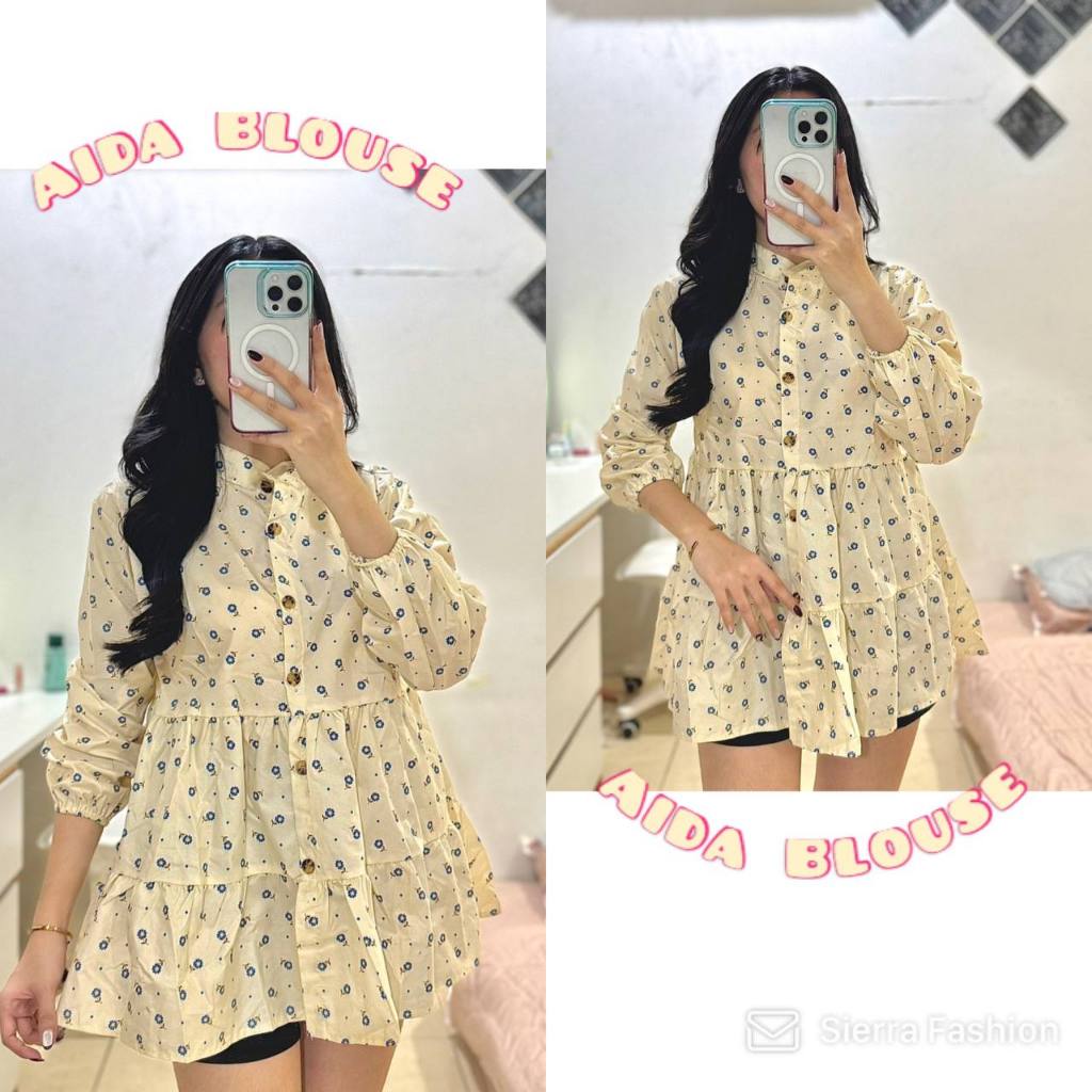 KEMEJA BLOUSE WANITA KATUN FLORAL BABYDOLL LD 100 MOTIF BUNGA-BUNGA LENGAN PANJANG KATUN MOTIF ALLSIZE FIT L