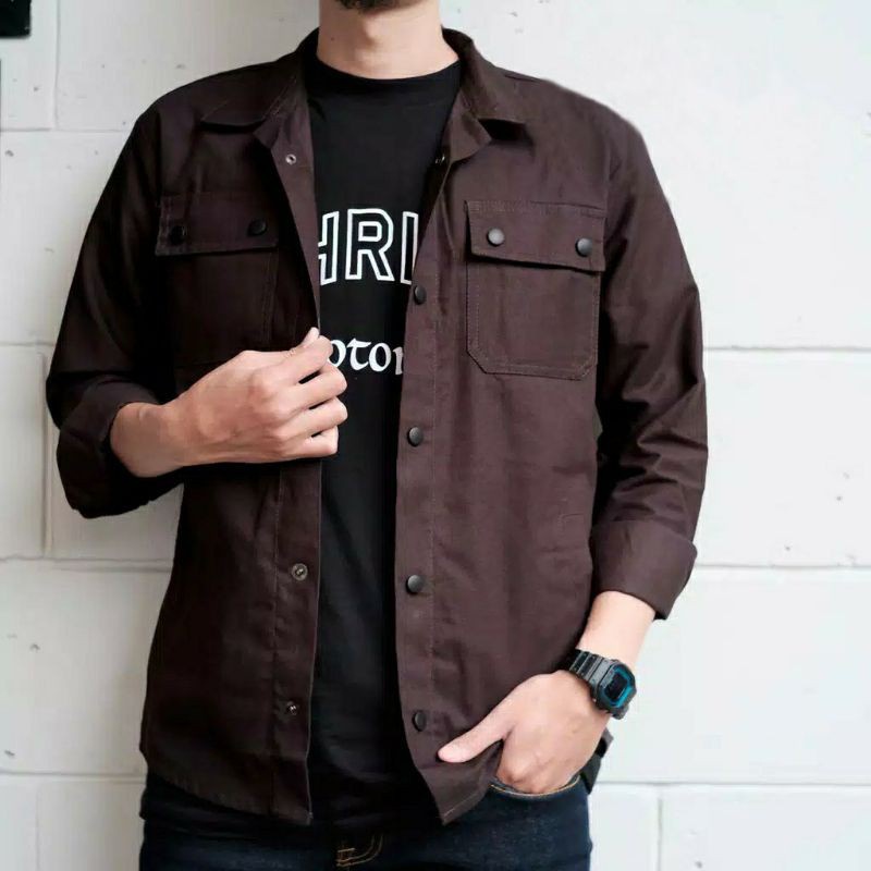 Jaket Semi parka Pria Wanita Kancing Hitam Jaket Trucker Pria Canvas Parka Full Size