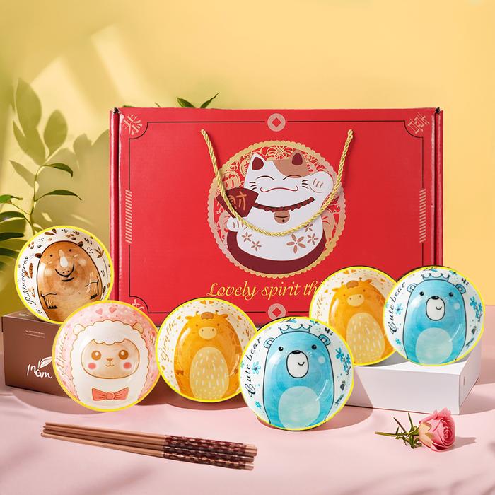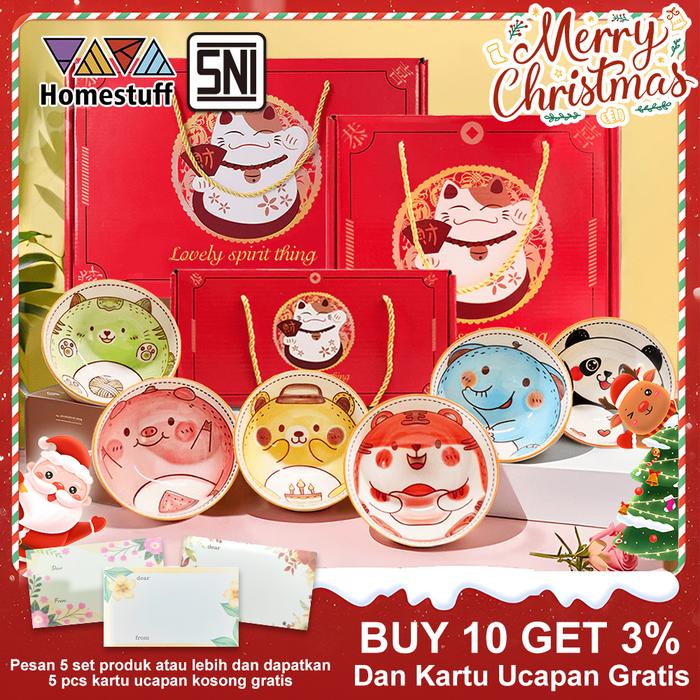 SNI HOMESTUFF Mangkok Set Keramik Motif Hewan lucu Hampers Mangkok souvenir Hadiah Nature Fresh