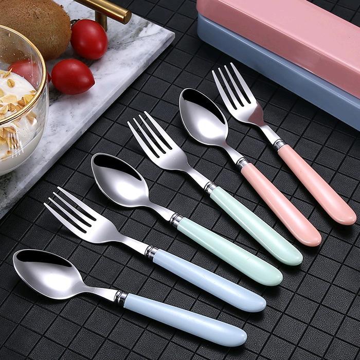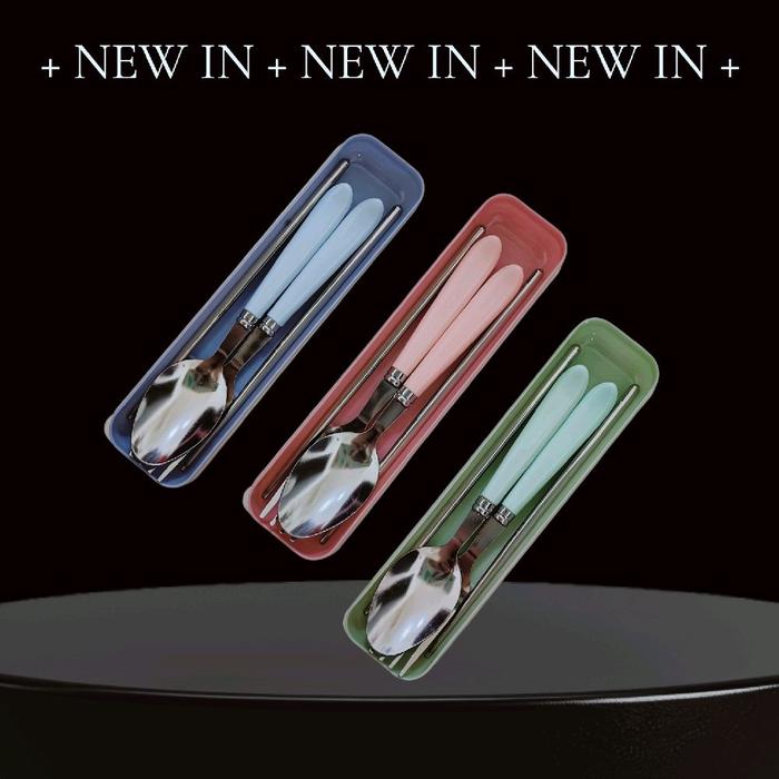 Alat makan sendok garpu sumpit set Stainless Steel /Sendok Set Karakter Lucu Kotak Plastik