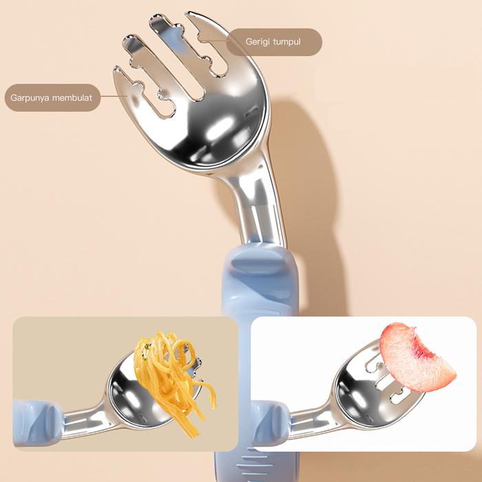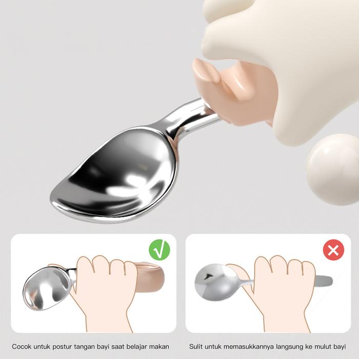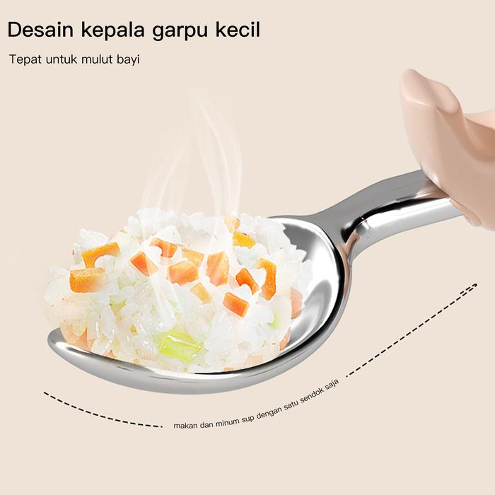 Set Sendok Garpu Makan Bayi Stainless Steel 316 Training Spoon Baby Sendok Belajar Makan Bayi Sendok