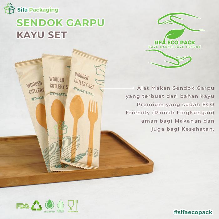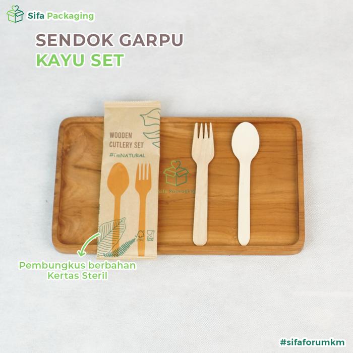 Sendok Garpu Kayu Steril Sendok Kayu Set Sekali Pakai Alat Makan Set PremiumBungkusKertas isi 50 Pcs