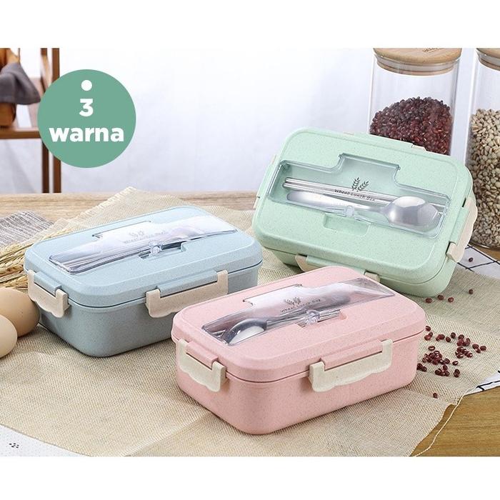 Eatkit Lunch Box Set Kotak Bekal Makan Jerami Gandum kotak makan 1000ml 4 In 1 Free Sendok Tempat