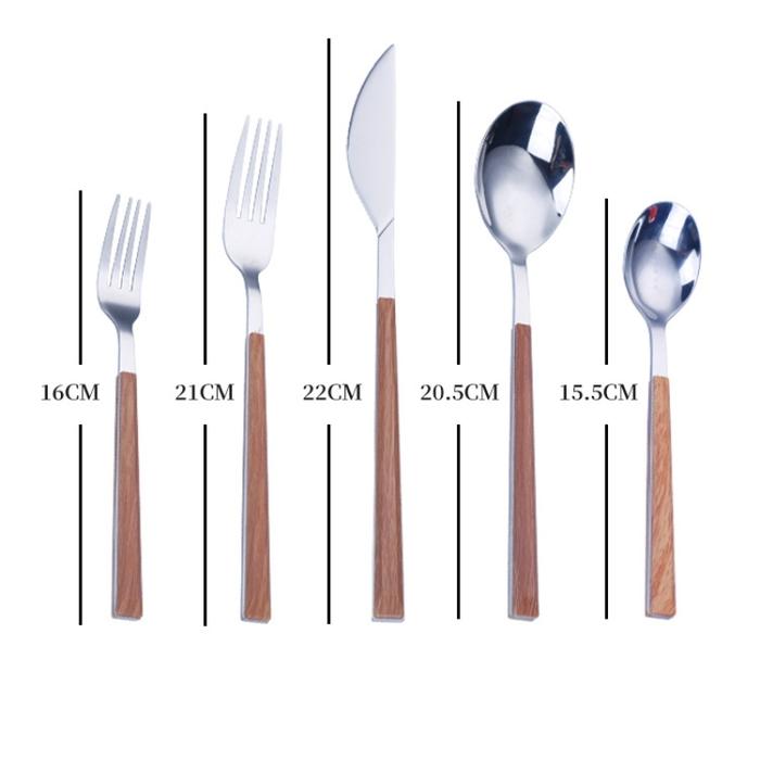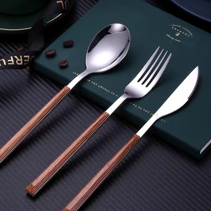Alat Makan Stainless Steel Gagang Kayu Sendok Garpu Pisau Makan Stainless Peralatan Makan Dengan