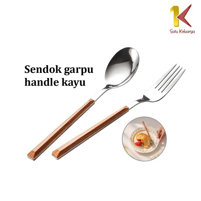 SK C1166 Sendok Garpu Stainless Steel Korea Handle Kayu
