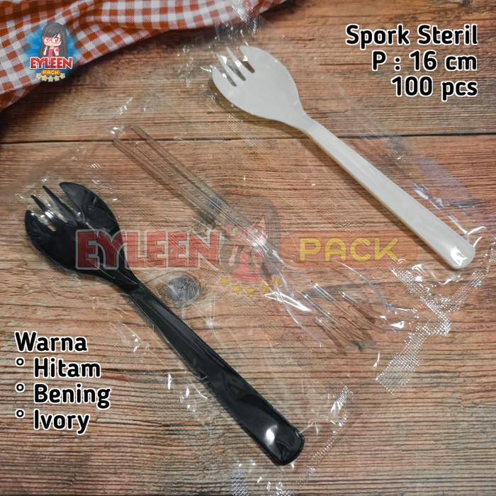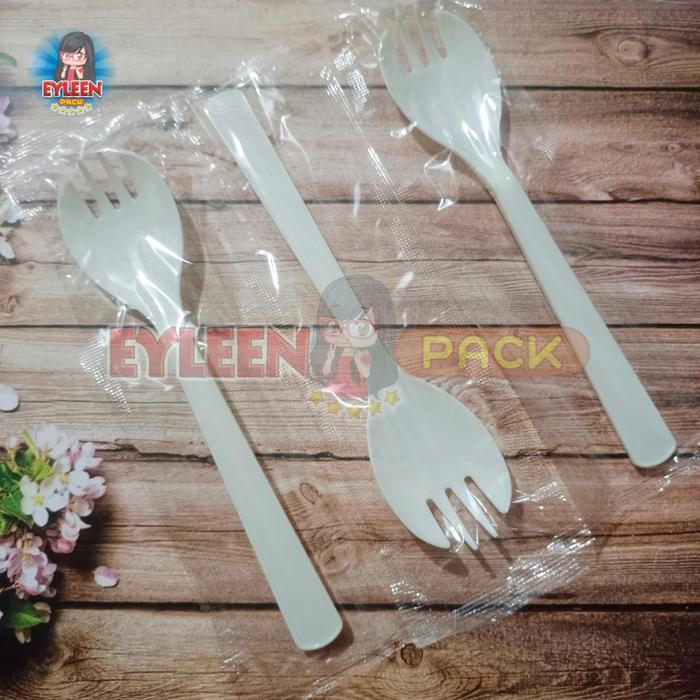 Spork Plastik Tebal Sendok Garpu 2 in 1 Steril isi 100 pcs