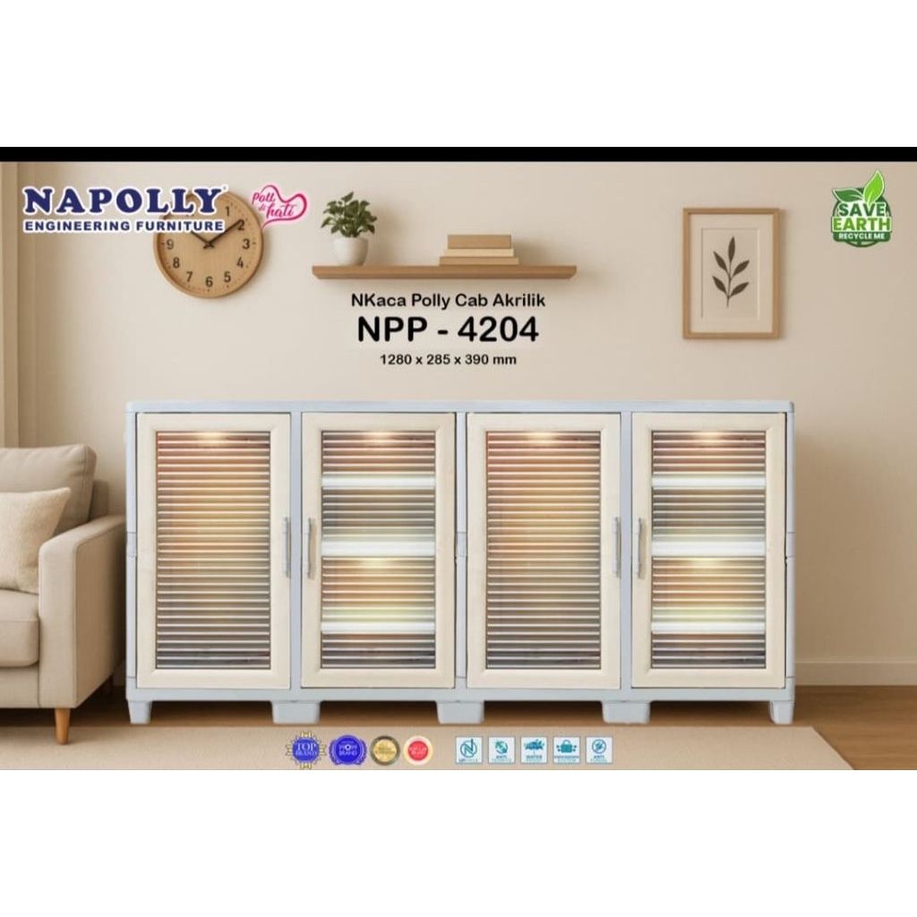 LEMARI PAKAIAN / RAK SERBAGUNA / RAK BUFET TV PLASTIK NAPOLLY KACA POLLY CAB AKRILIK NPP -4204