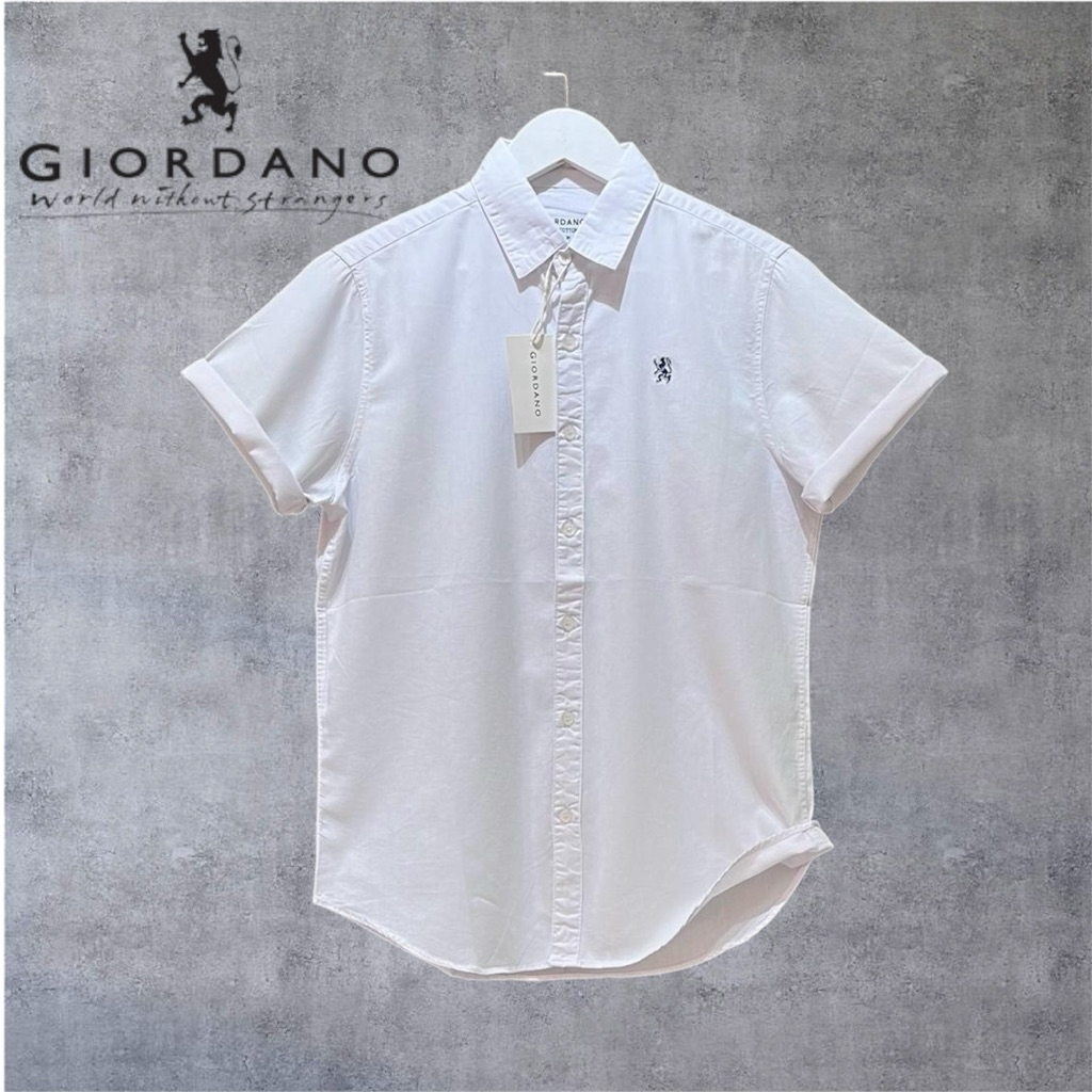 GIORDANO Kemeja Lengan Pendek Pria Pola Slim Fit Bahan Katun Twiil