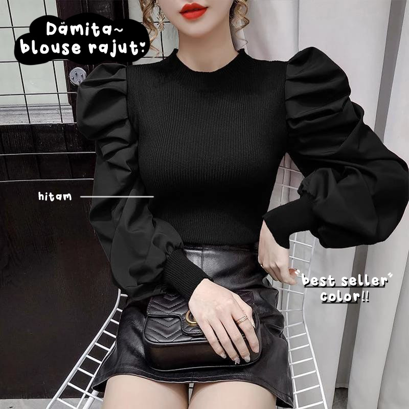 Nj Damita Blouse Rajut Wanita Baju Ramadhan Muslim Hijab Ootd Lebaran Ramadan Atasan Remaja Lengan Balon Panjang Kantor