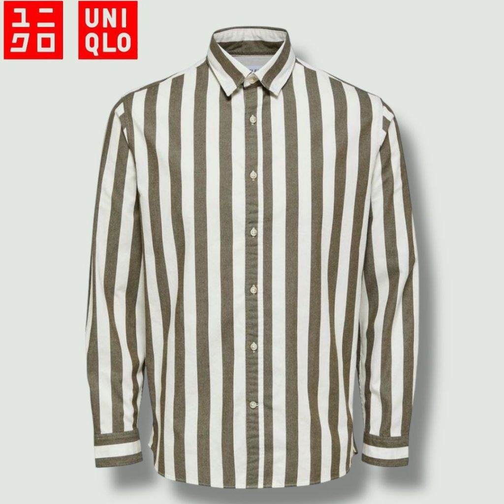 Kemeja Pria dewasa Lengan Panjang Motif Salur Besar-Kecil,Kemeja Panjang Pria Stripe Bahan 100 PERSEN full Katun Adem,Kemeja Kasual Pria