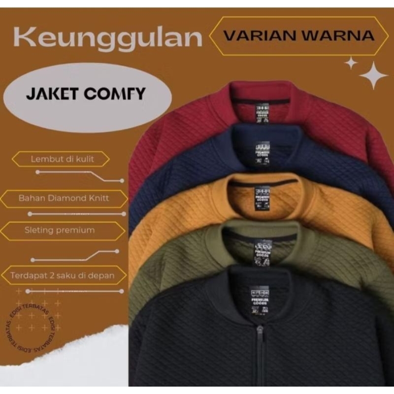 Jaket Comfy Zipper Jumbo Pria Wanita Jacket Bomber Diamon knitt Size M L XL XXL XXXL