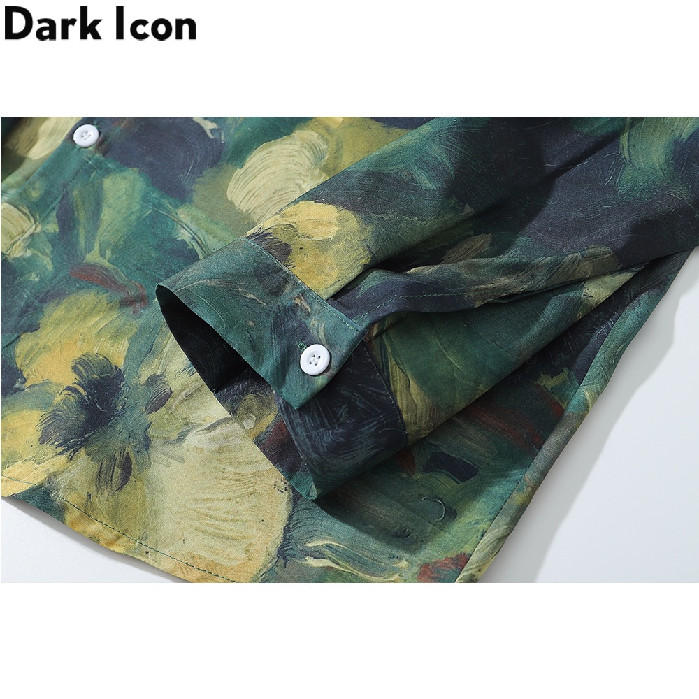 Dark Icon Oil Painting Kemeja Pria Legan Pendek Casual Kemeja Motif Wanita Long Sleeve Shirt Premium