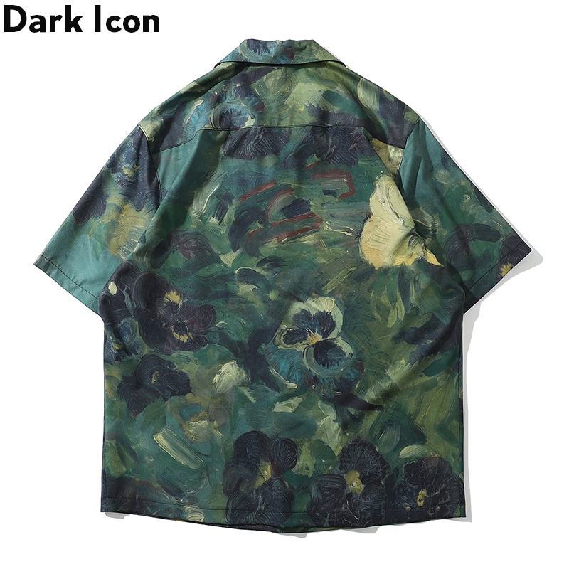 Dark Icon Hand Oil Painting Full Printed Hawaiian Shirts Men Summer Street Men's Shirt