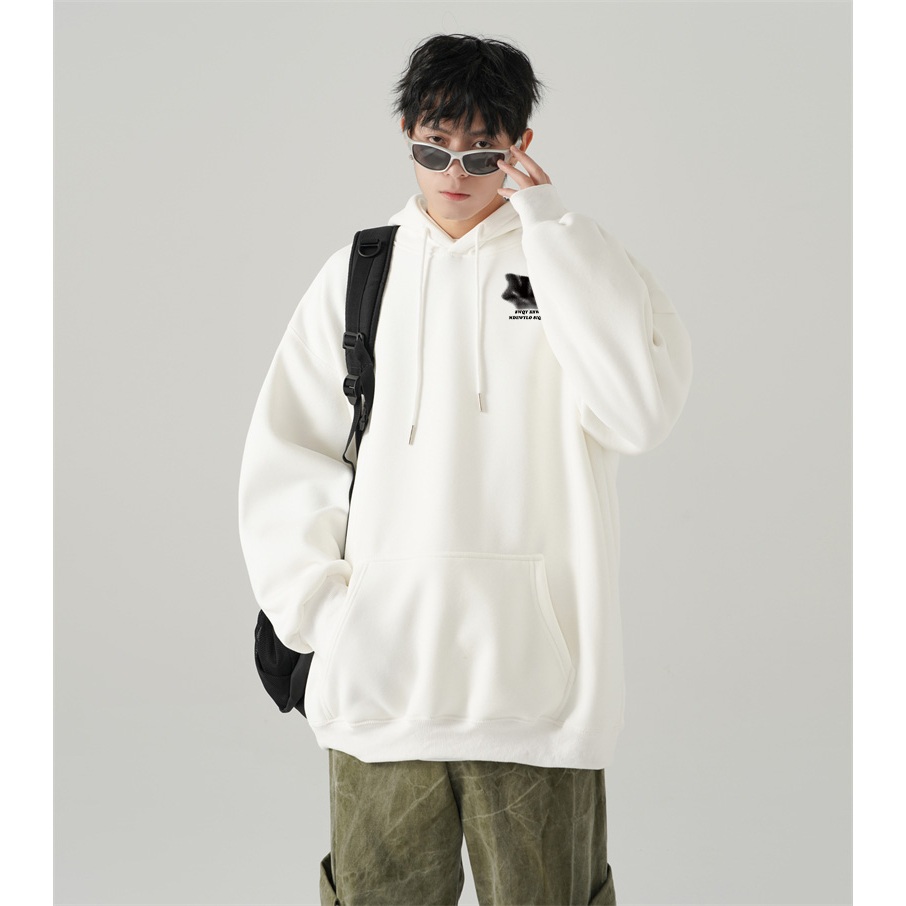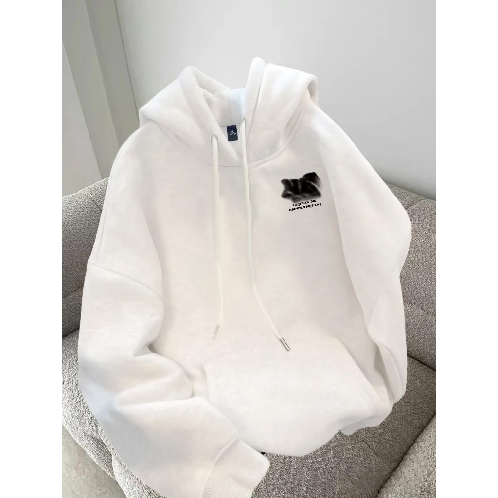 Hoodie Pria | Cetakan Inggris hitam | Hoodie Putih Korean Style Sweater Cowok Pria Jumper Oversize Premium Pria Wanita Size M-2XL