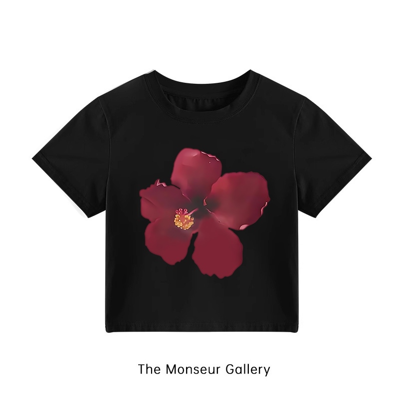 The Monseur Gallery Kaos Crop Wanita Slimfit Flower Design Hibiscus Orchid Kaos Crop Top Y2K Fashion | Baju Croptee Hita