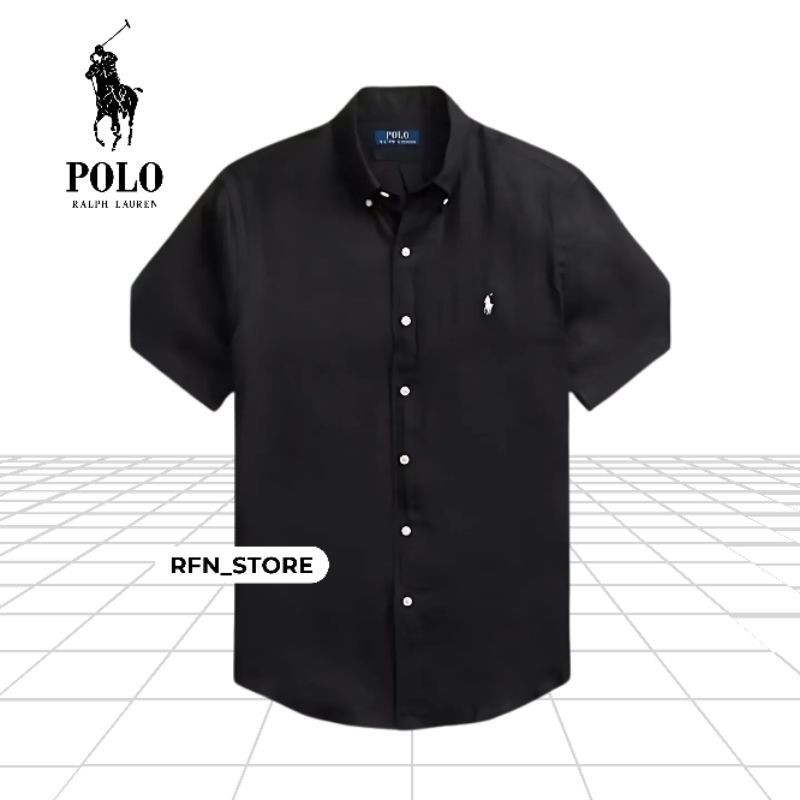 Baju kemeja pria p.o.l.o ralph lauren lengan pendek terbaru model slimfit bahan 100 PERSEN catoon garmentt