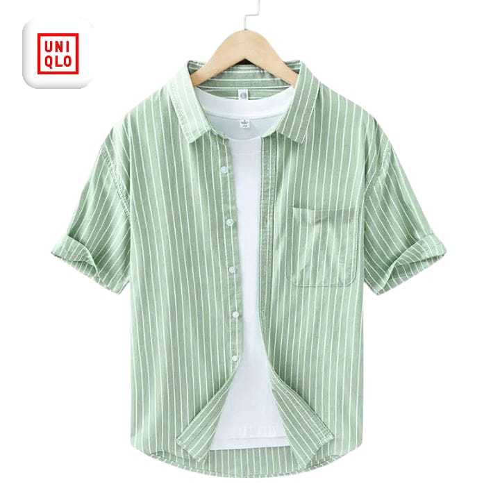 Kemeja Pria Motif Garis Lengan Pendek Slim Fit Casual Korean Style Adem Stylish Katun Premium