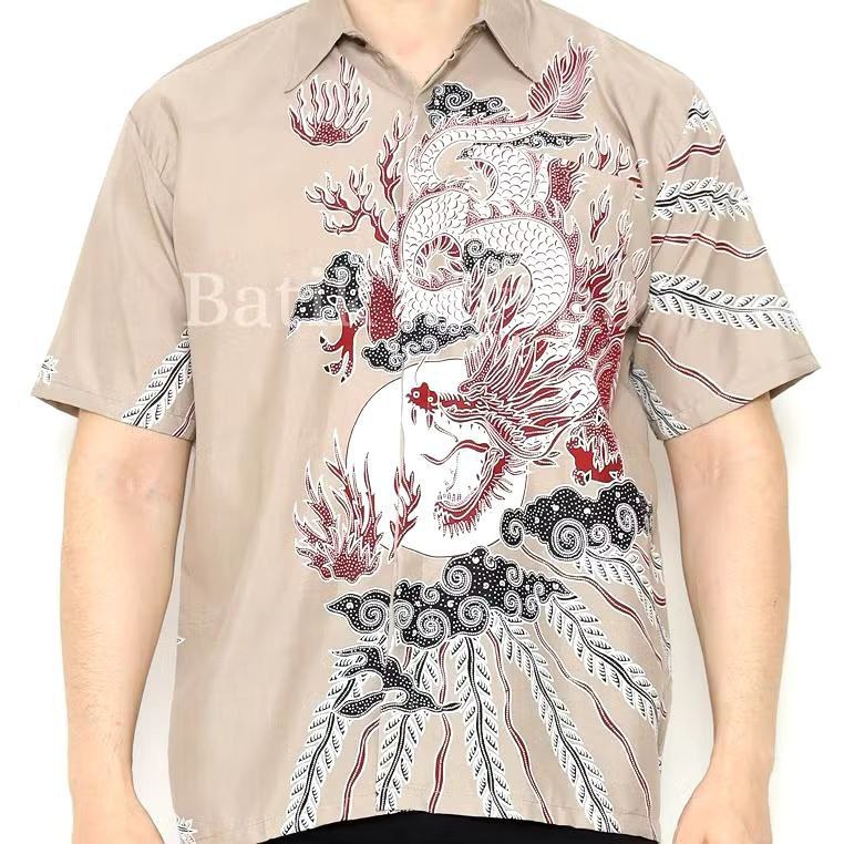 KEMEJA BATIK PRIA LENGAN PENDEK MOCCA NAGA MERAH TRENDY SIZE M L XL XXL