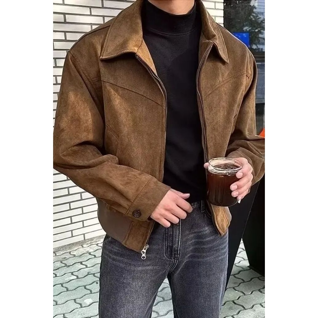 Jaket Suede Pria Bahan Kulit Suede Asli Lembut Model Casual