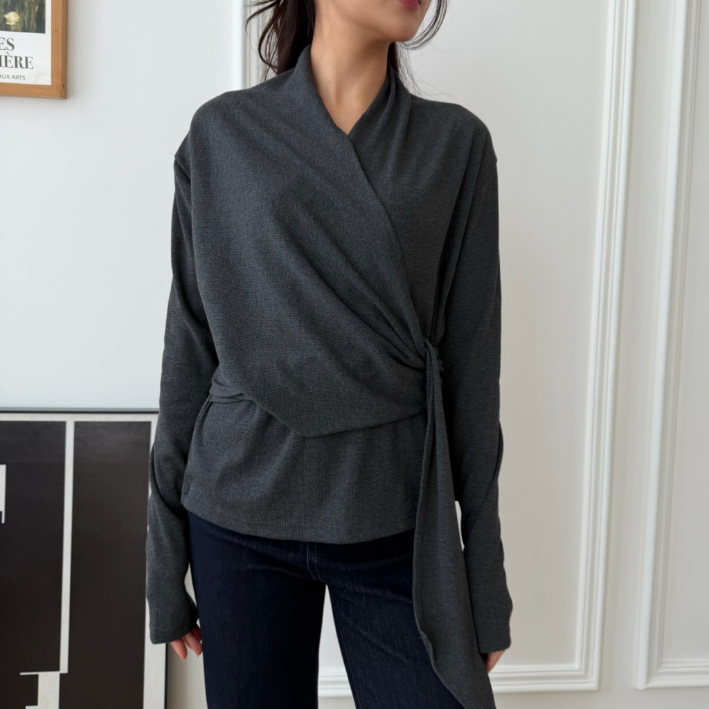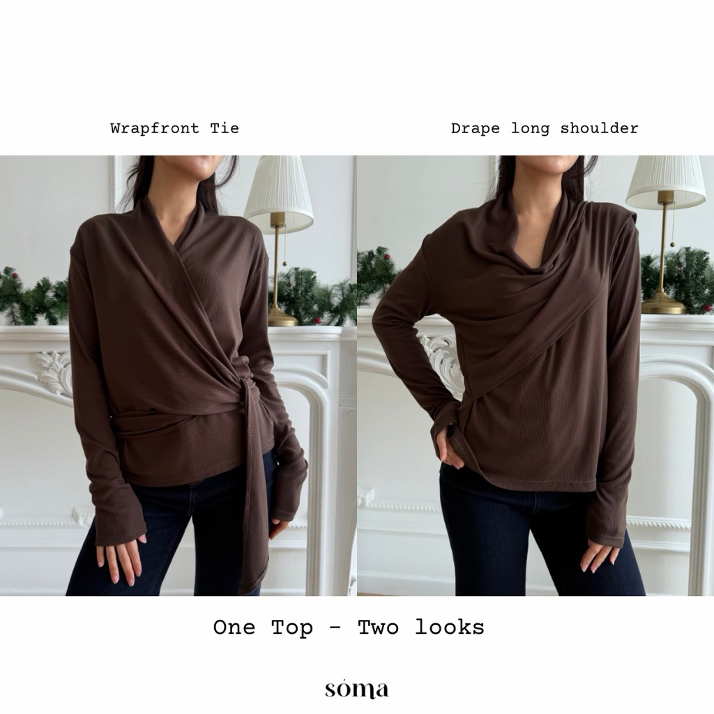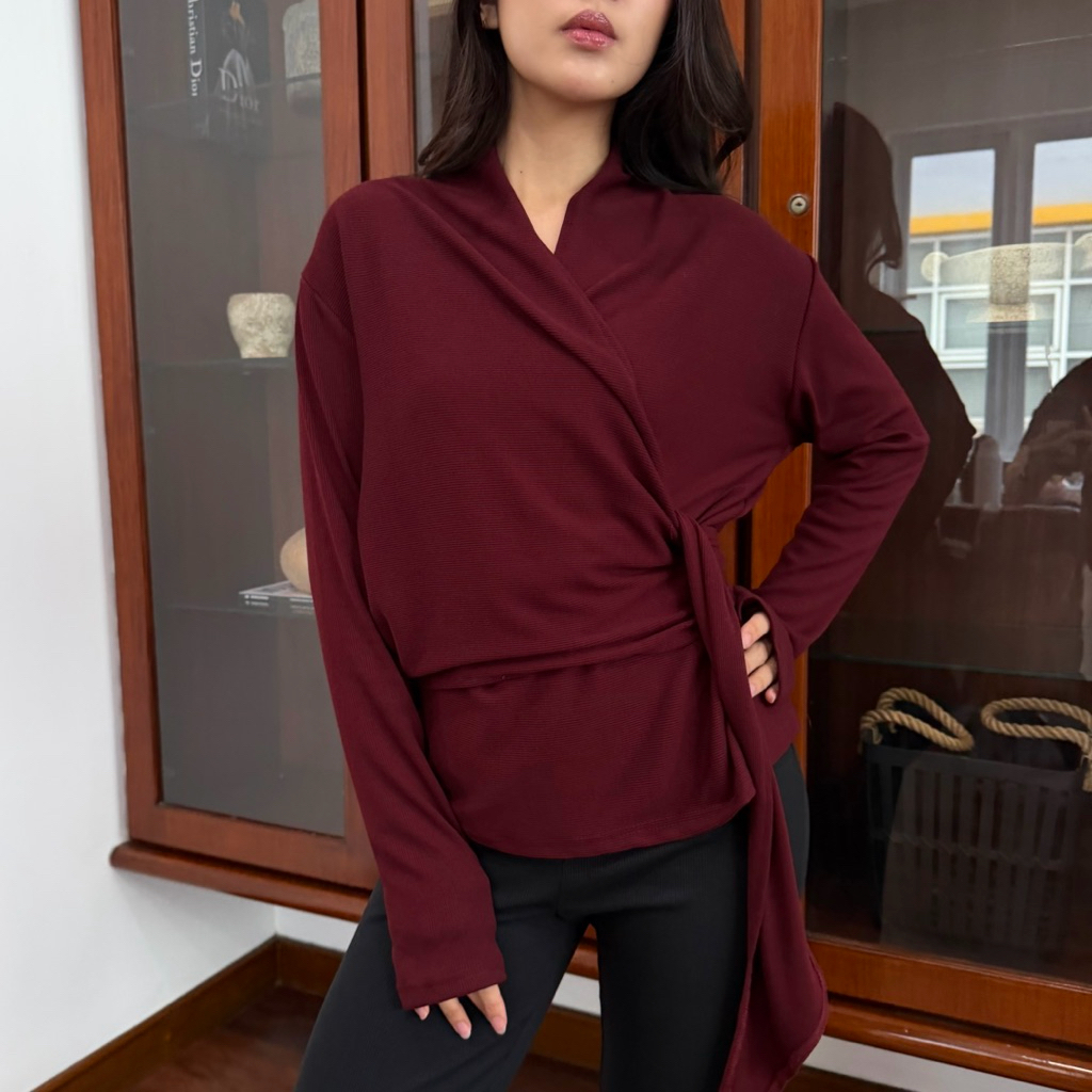Veja Top Wrap Knit Lengan Panjang | Atasan Silang Adjustable Fit | Blouse Korean Style Elegant Soma