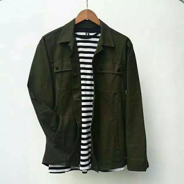 Jaket Trucker Semi Parka Pria Kancing Hitam Canvas Man Best Seller