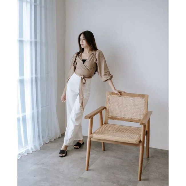 Wrap Top Blouse Kemeja / Crop Top Rayon Murah / Wrap Top Wanita / Atasan Wanita Tali Ikat Lengan Panjang