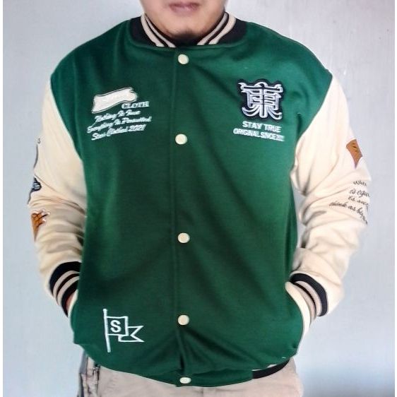 Jaket Varsity Vintage Full Bordir HITAM | Jaket Baseball Varsity Pria Wanita New arrival anjay