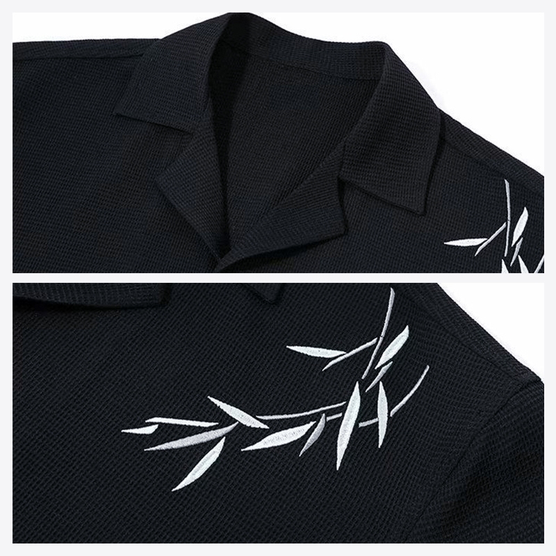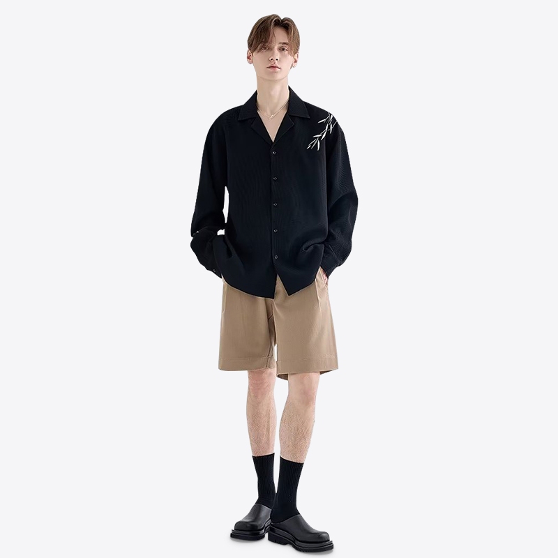 Livveharft-Kemeja Fleece Pria Lengan Panjang Bordir Kemeja Hitam/Putih Pria Baju Asimetris Pria Korean Style