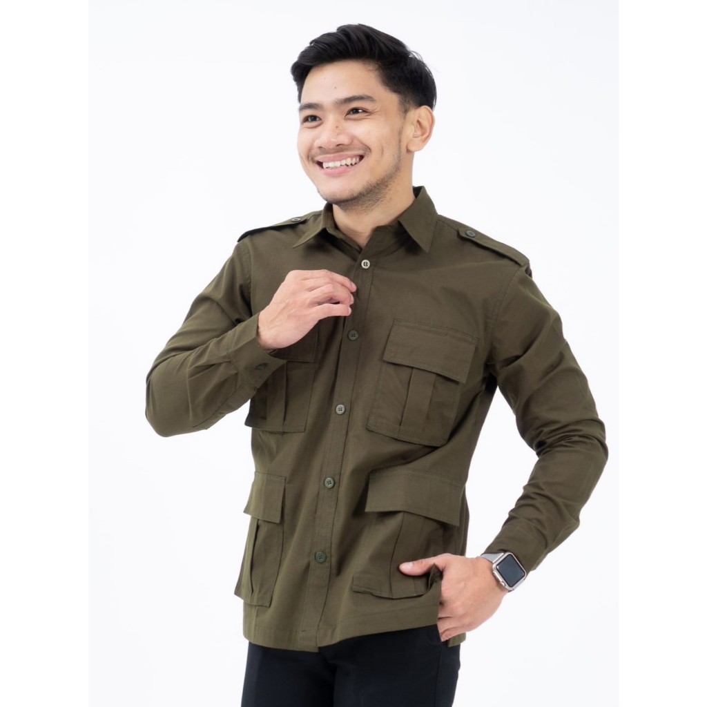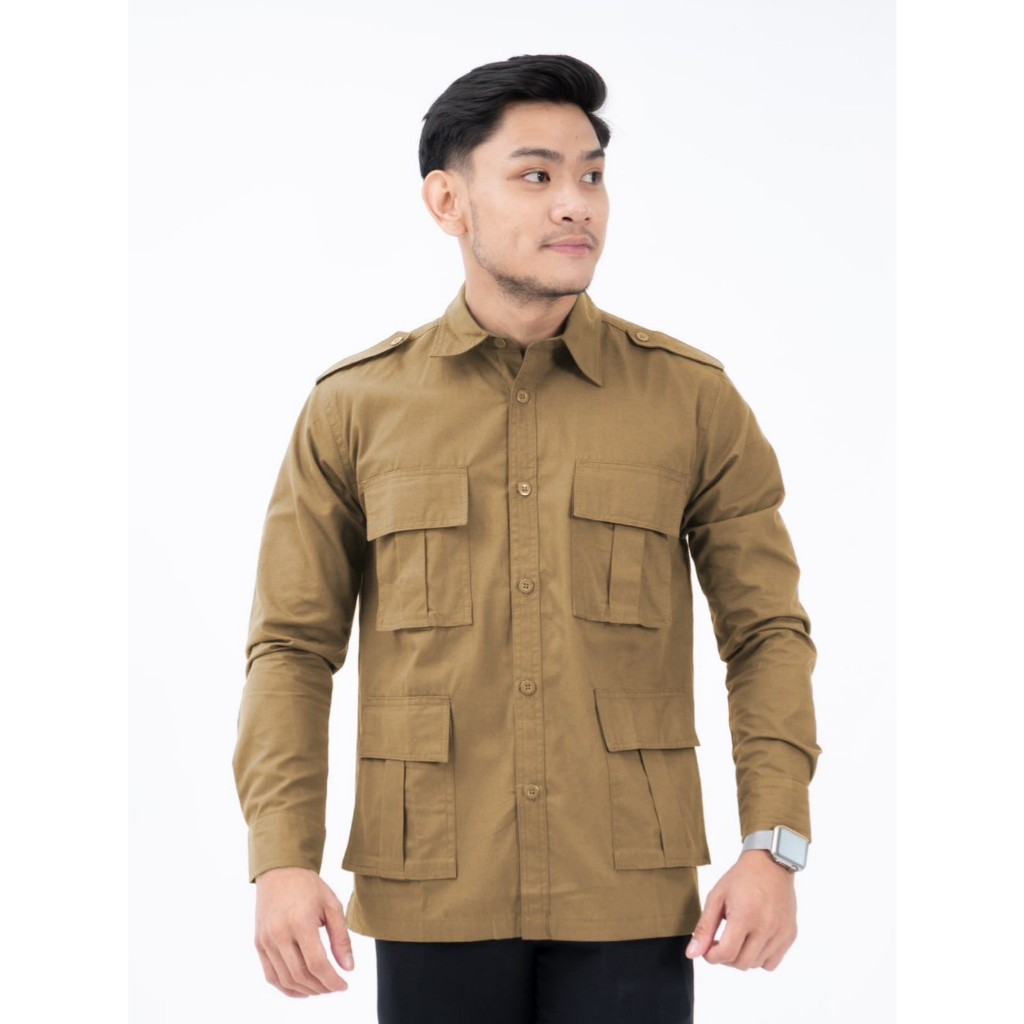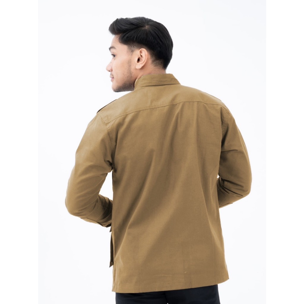 Samone - Kemeja Lengan Panjang Pria Khaki Model Pak Prabowo Original Premium THE QACIP New Ukuran BIG SIZE/