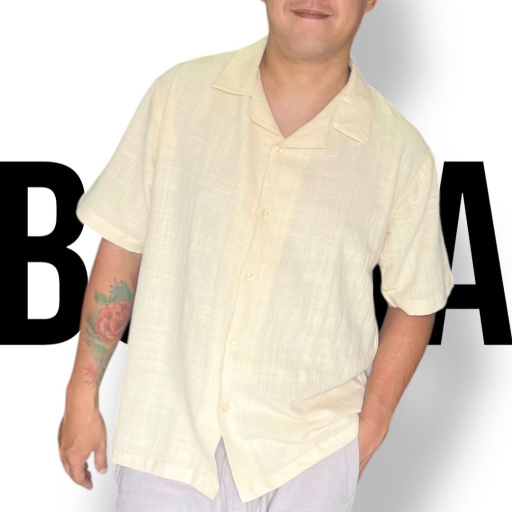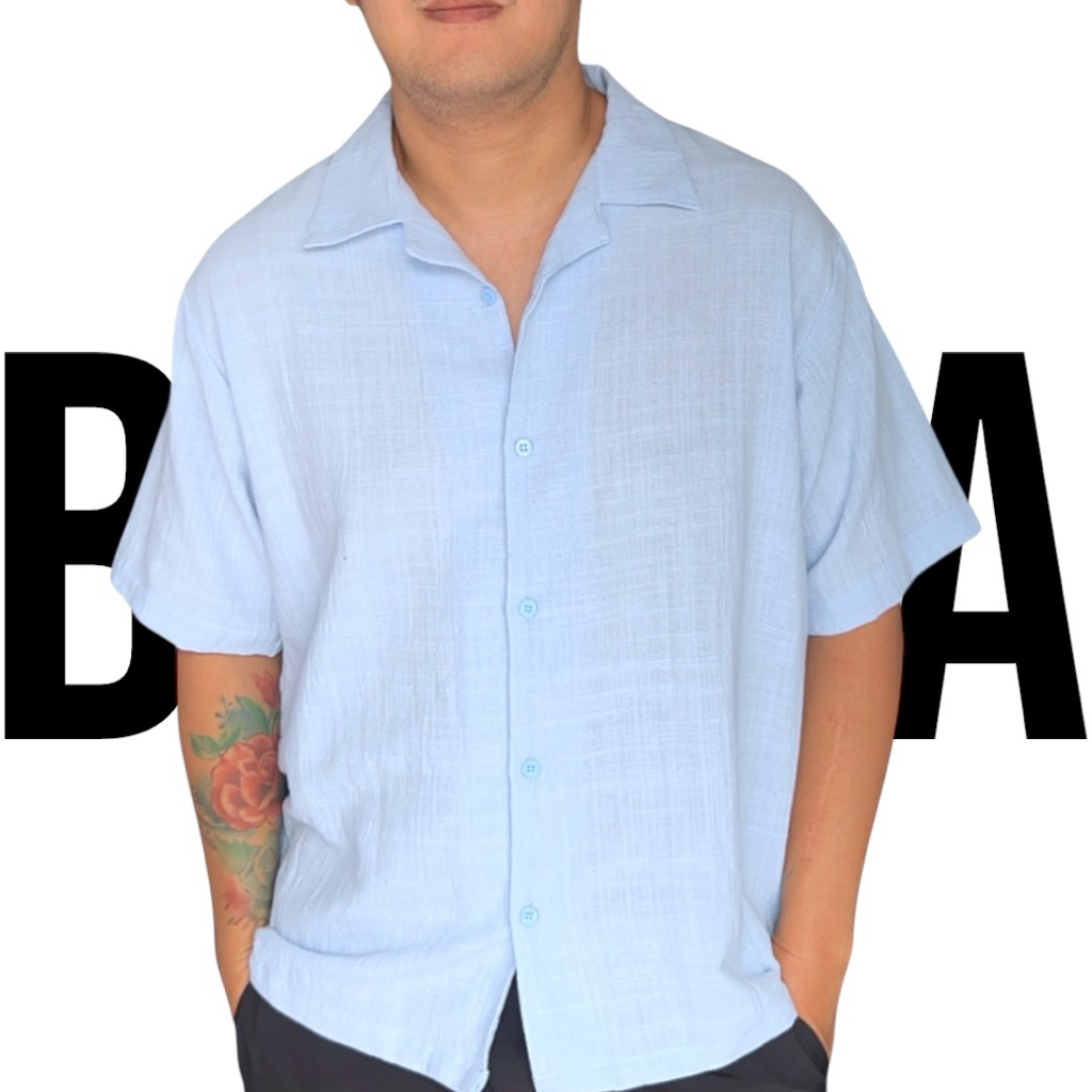 KEMEJA LINEN PRIA LENGAN PENDEK CASUAL KERAH BOWLING ADEM RINGAN Size M - XXXL | BORRA
