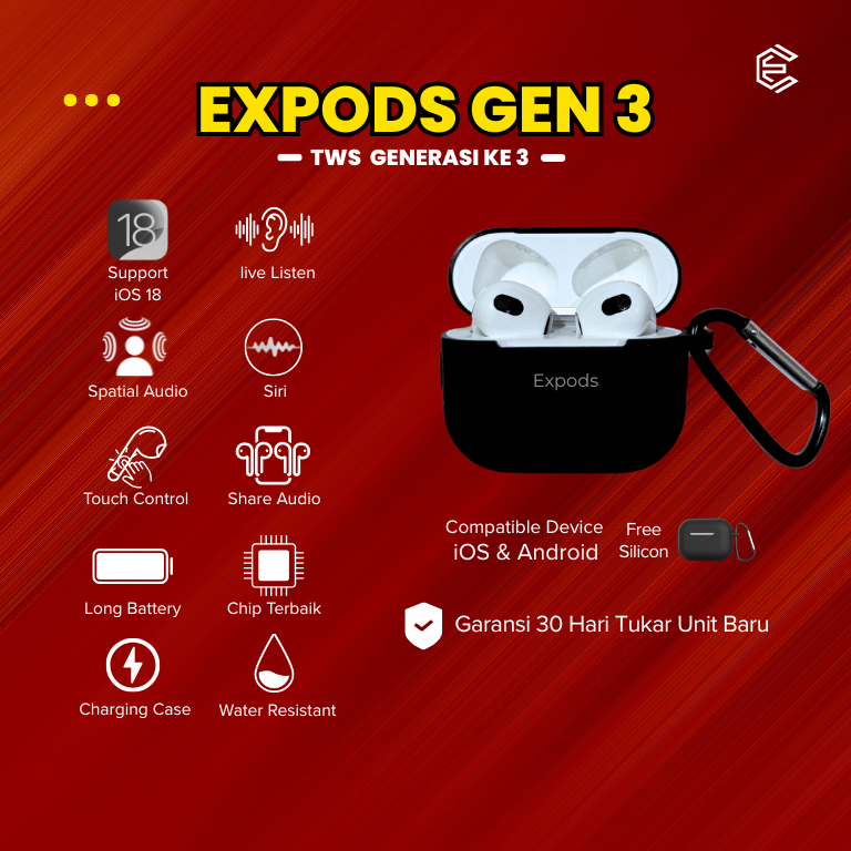 Expods TWS Gen 3 Earphone Bluetooth Wireless Charging Case