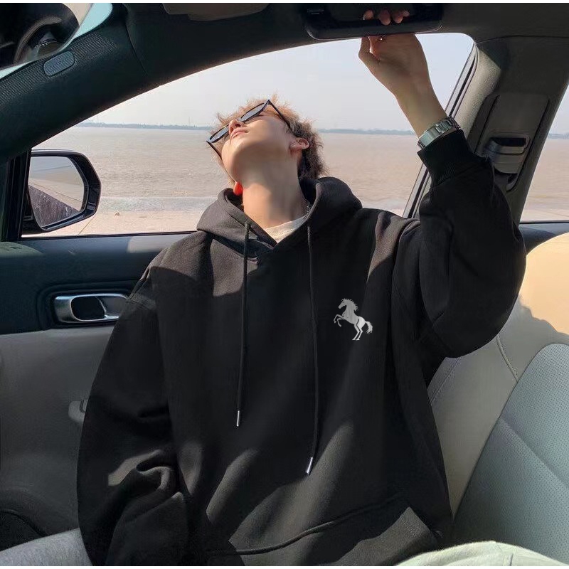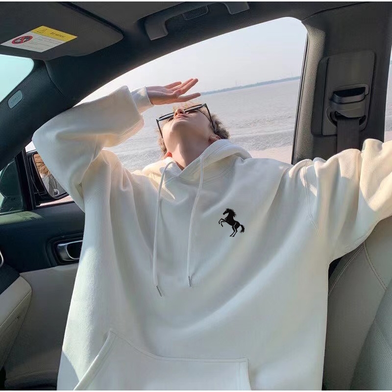 Disneay Hoodie Pria Boxy Putih Sweater Hoodie Tren Retro | Cetakan Simple Pony Logo Motif Kecil Keren Sweater Pria Jumbo | Hoodie Pria Original 100 PERSEN Bahan Tebal Keren