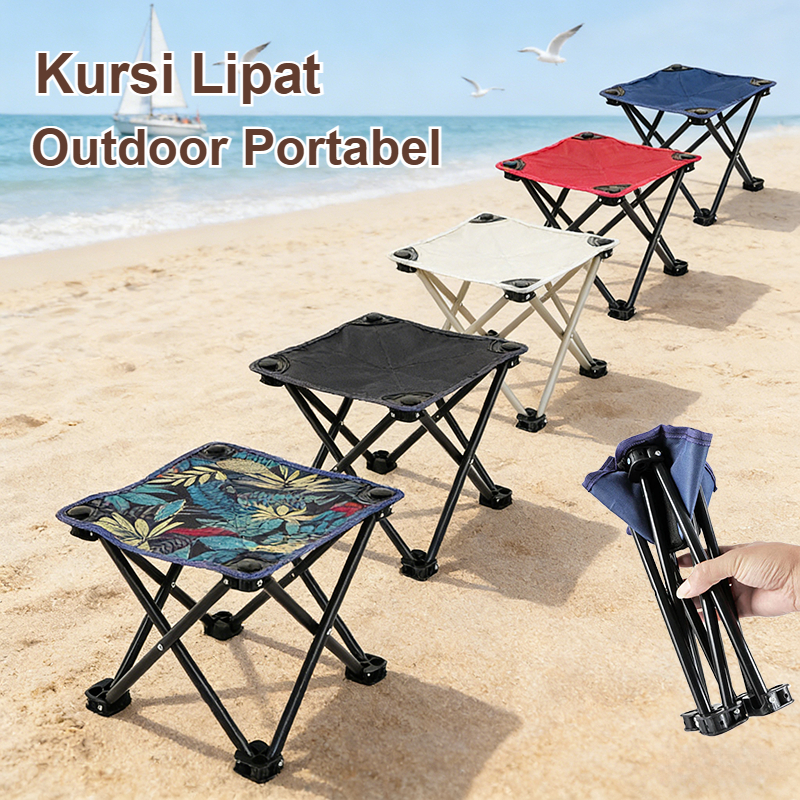Kursi Lipat Portable Mini Bangku Lipat door Kain 600D Oxford Kursi Camping Serbaguna Beban 100KG