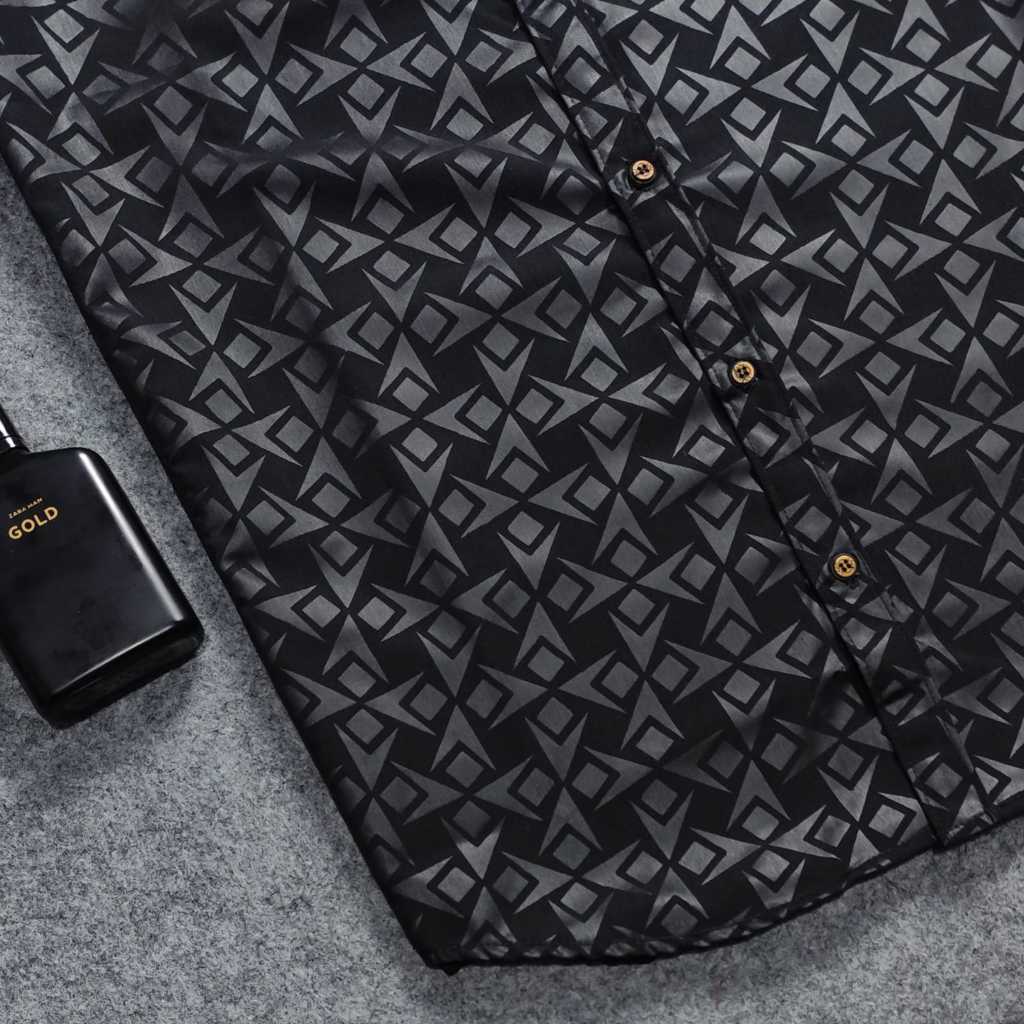 Detak Original Kemeja Embos Sultan Pria Lengan Pendek Motif Kunai Kasual Slim-fit