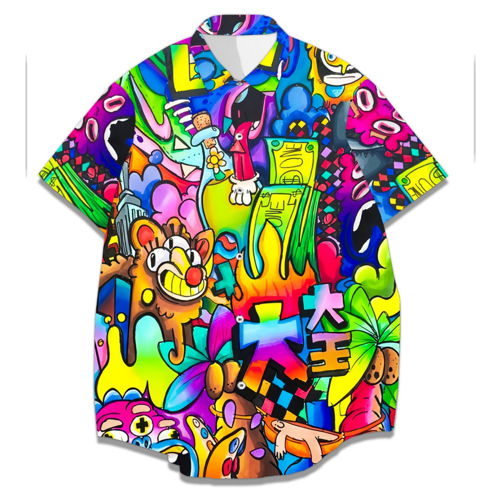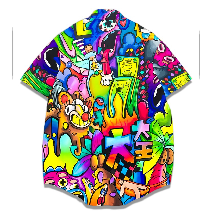 KEMEJA HIP HOP RETRO MUSIM PANAS LENGAN PENDEK MOTIF FULL PRINT DOODLE ART
