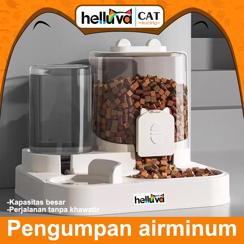 helluva Pet Feeder Otomatis /Tempat makan kucing 2-in-1Tempat Makan& Minum HewanPeliharaan Kucing/Anjing autofeeder