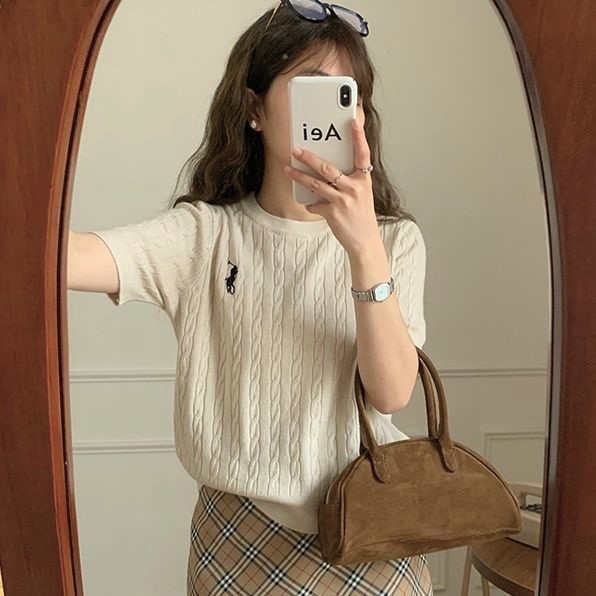 Ajw Atasan Wanita Cable Knit Polo Rajut Korean Style Hce | Atasan Korean Blouse Casual Polo Embossed T-Shirt | Baju Raju