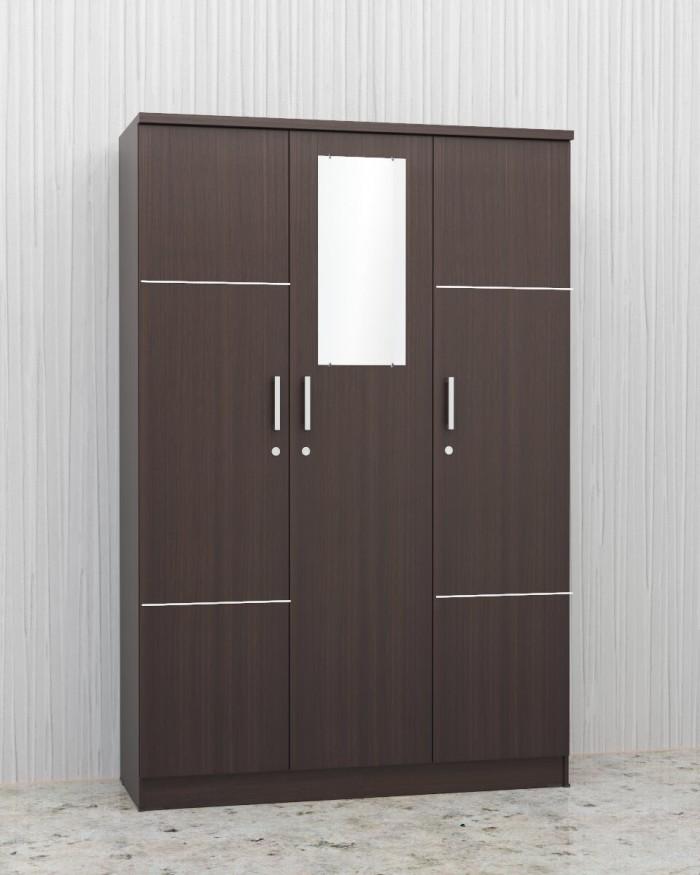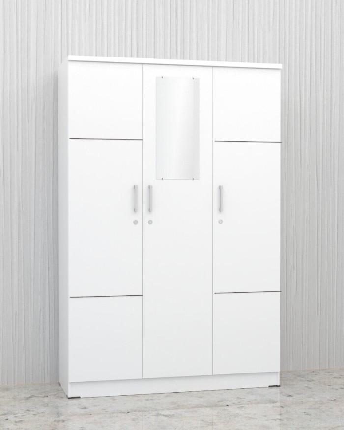 Lemari Pakian 3 Pintu Termurah Lemari Baju Gantung Dan Rak Dengan Kaca - Solid White, Tanpa Rakit
