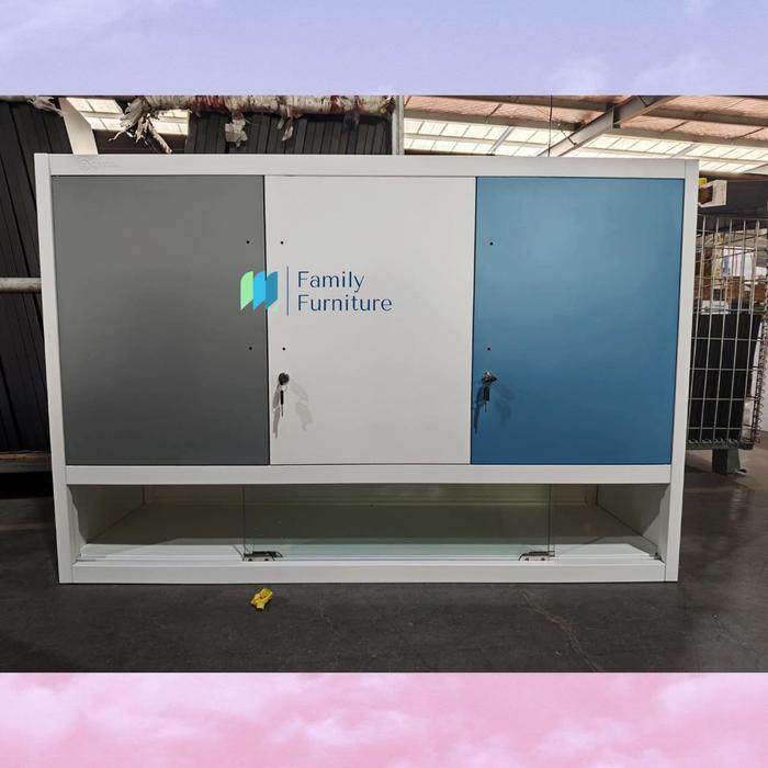 Lemari Dapur Gantung Plat Besi 3 Pintu Anti Air Anti Rayap Kombinasi Warna Biru