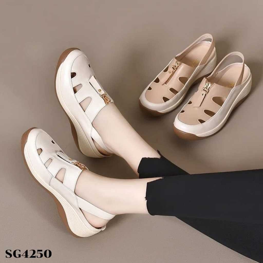 YJH Sandal Retro Tinggi 5cm Bahan Sintetis Sepatu Trendy Fashion Wanita Beige Khaki 36-40 Korea SG4250