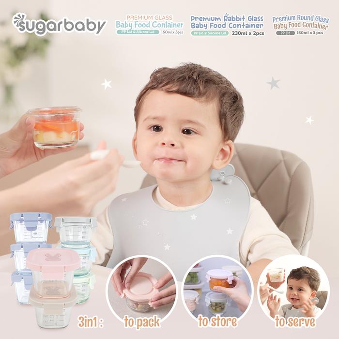 SugarBaby Premium Glass Jar Baby Food Container 3 pcs BPA FREE Peralatan Makan Bayi MPASI Wadah